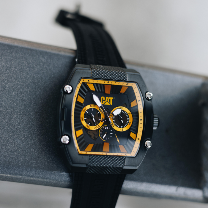For over 80 years, Caterpillar has been building the world's infrastructure and, in partnership with independent dealers, is driving positive and sustainable change on every continent. Caterpillar is a technology leader and the world's largest maker of construction and mining equipment, diesel and natural gas engines and industrial gas turbines. Caterpillar develops innovative and new high technology for its products. The same principle is applied to Cat timekeeping equipment lifestyle products. Constructed from the highest quality materials, Cat watches are developed to meet stringent requirements, without compromises. Each Cat watch encompasses cutting edge design and high functionality to offer a solid performance in a variety of active situations. Cat watches offer just the right watch for any man with great emphasis being attached to the casual and powerful design of the watch and the philosophy behind the Caterpillar brand. Caterpillar is synonymous with reliability, durability and cutting edge technology since 1904.