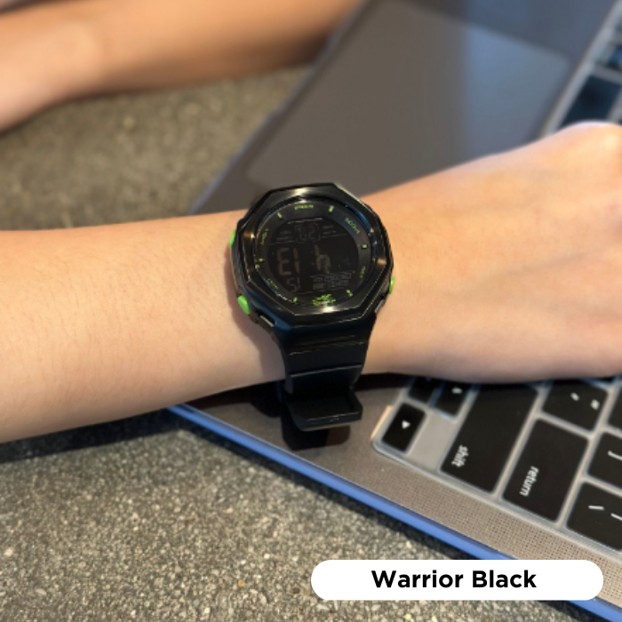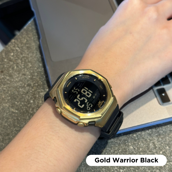 Reebok United RV-UNI-G9-S2PB-B2 Warrior Black Gold PU with SS Buckle Unisex Digital Watch | 44MM | 10ATM | 2Y Warranty